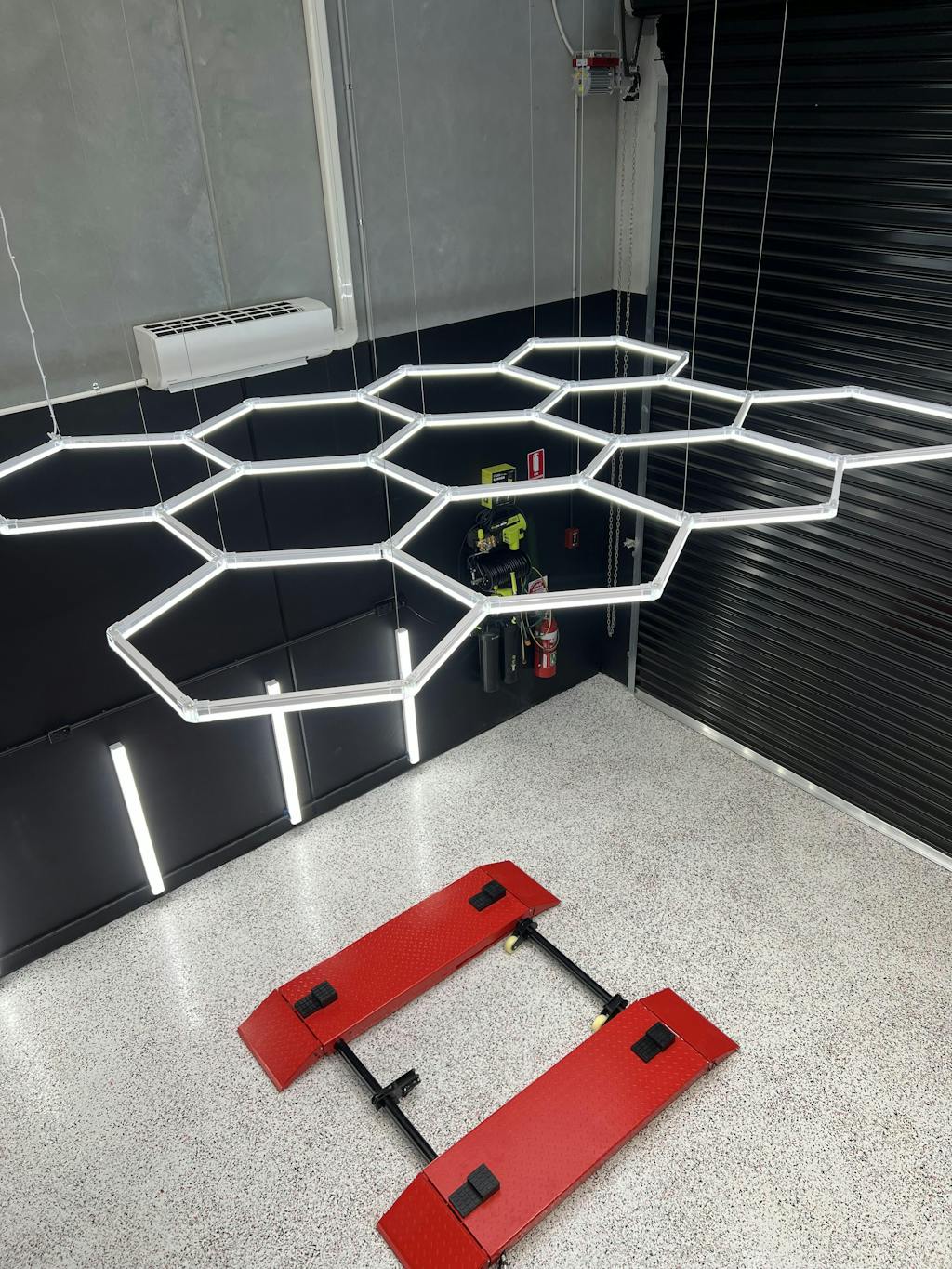 HEXA Lighting Suspension Kits are designed for seamless installation with our Hexagon LED Lighting fixtures and Linear LED Lighting Systems. Engineered for strength and versatility, each kit features adjustable height cables for precise positioning and easy customisation to suit garages, gyms, showrooms and commercial spaces. The premium metallic fabric weave finish delivers a clean architectural look while ensuring stable and secure suspension for HEXA lighting systems.